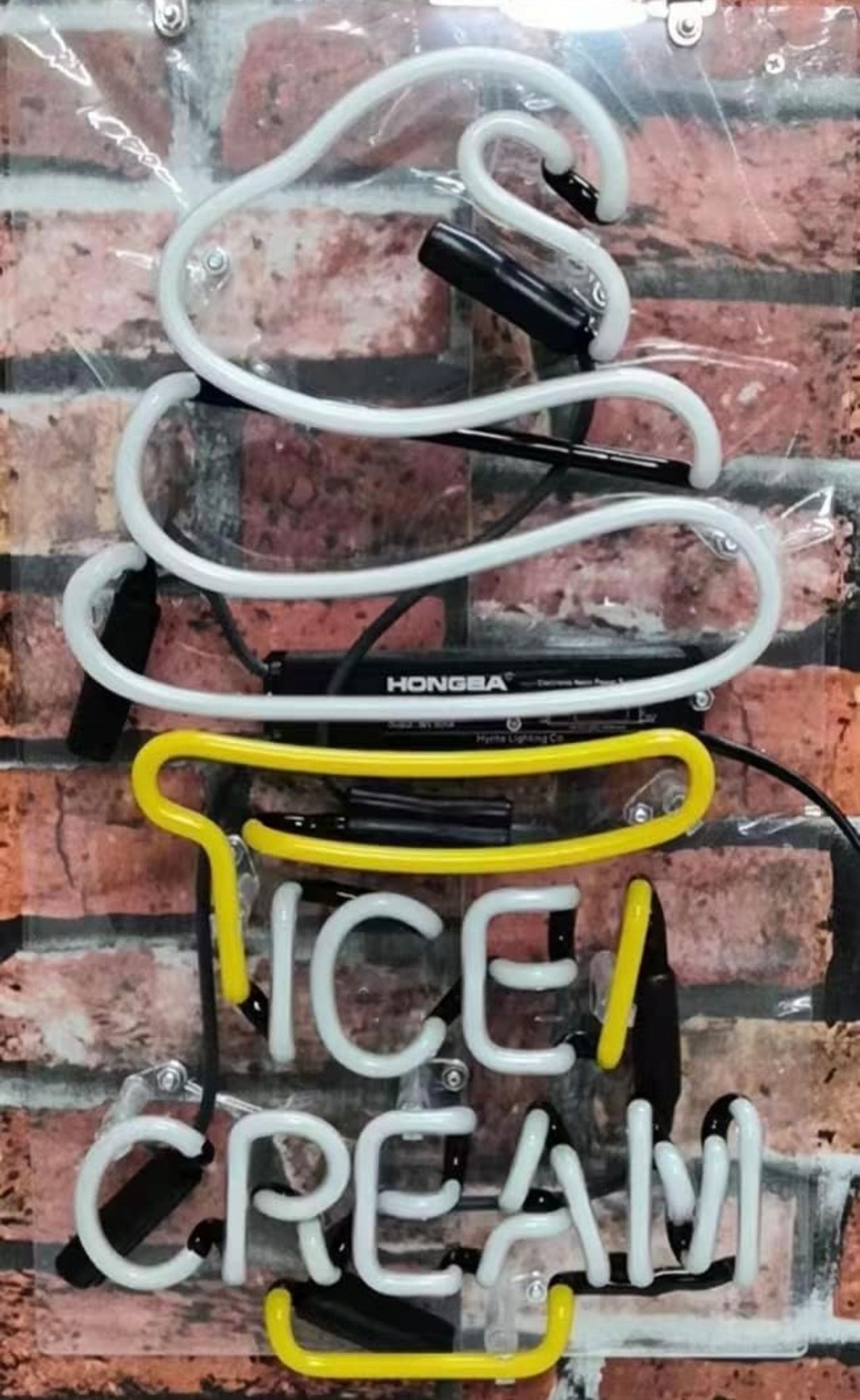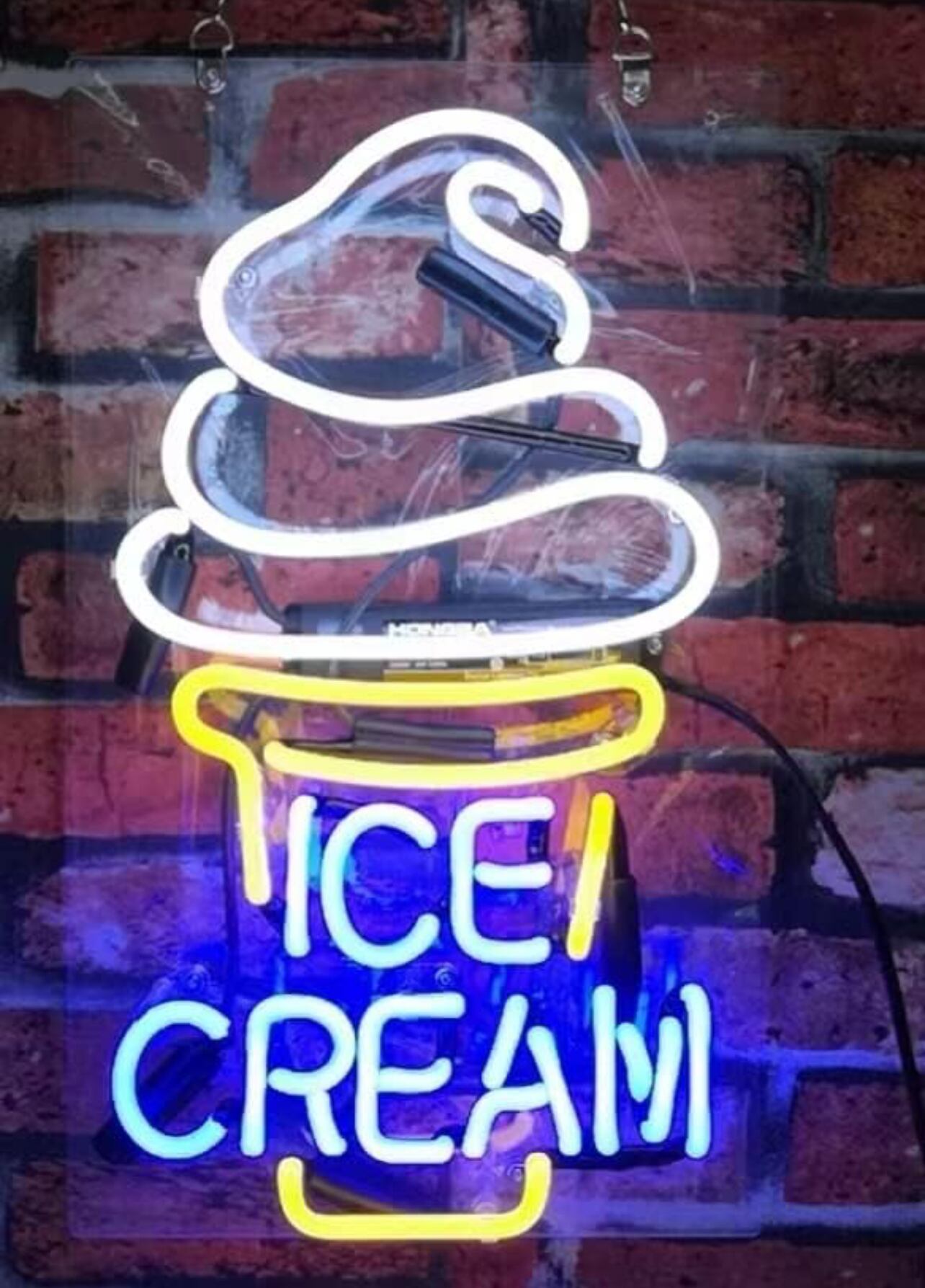 • デザイン:アイスクリームのシルエットをモチーフにしたポップなデザインのネオンサイン。ホワイト、イエロー、ブルーの3色の発光が特徴で、カフェ、アイスクリームショップ、イベントスペース、個人のインテリア装飾に最適です。