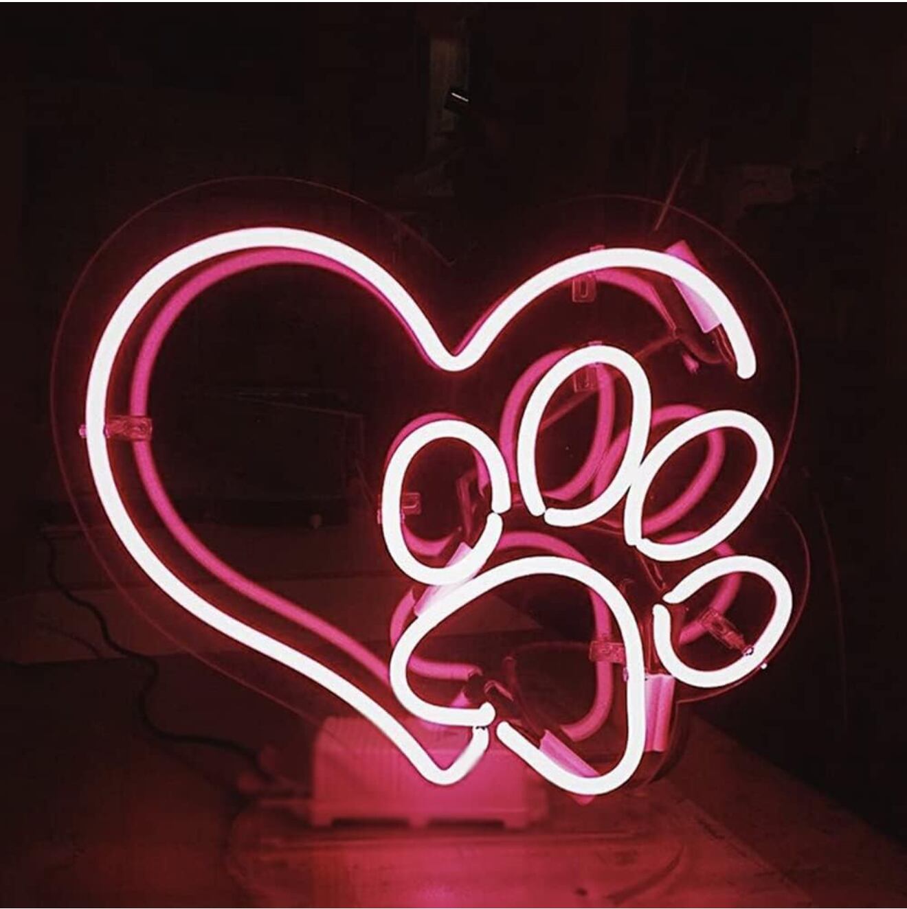オーダー 犬猫好き必見 ハート 肉球 ネオン管 ピンク インテリア オリジナルネオンサイン ネオンライト 犬猫グッズ ピンクライト LEDライト ハート 肉球 ペット用品 壁掛け インテリアライト ギフト 355×203mm | Oct.life_STYLE