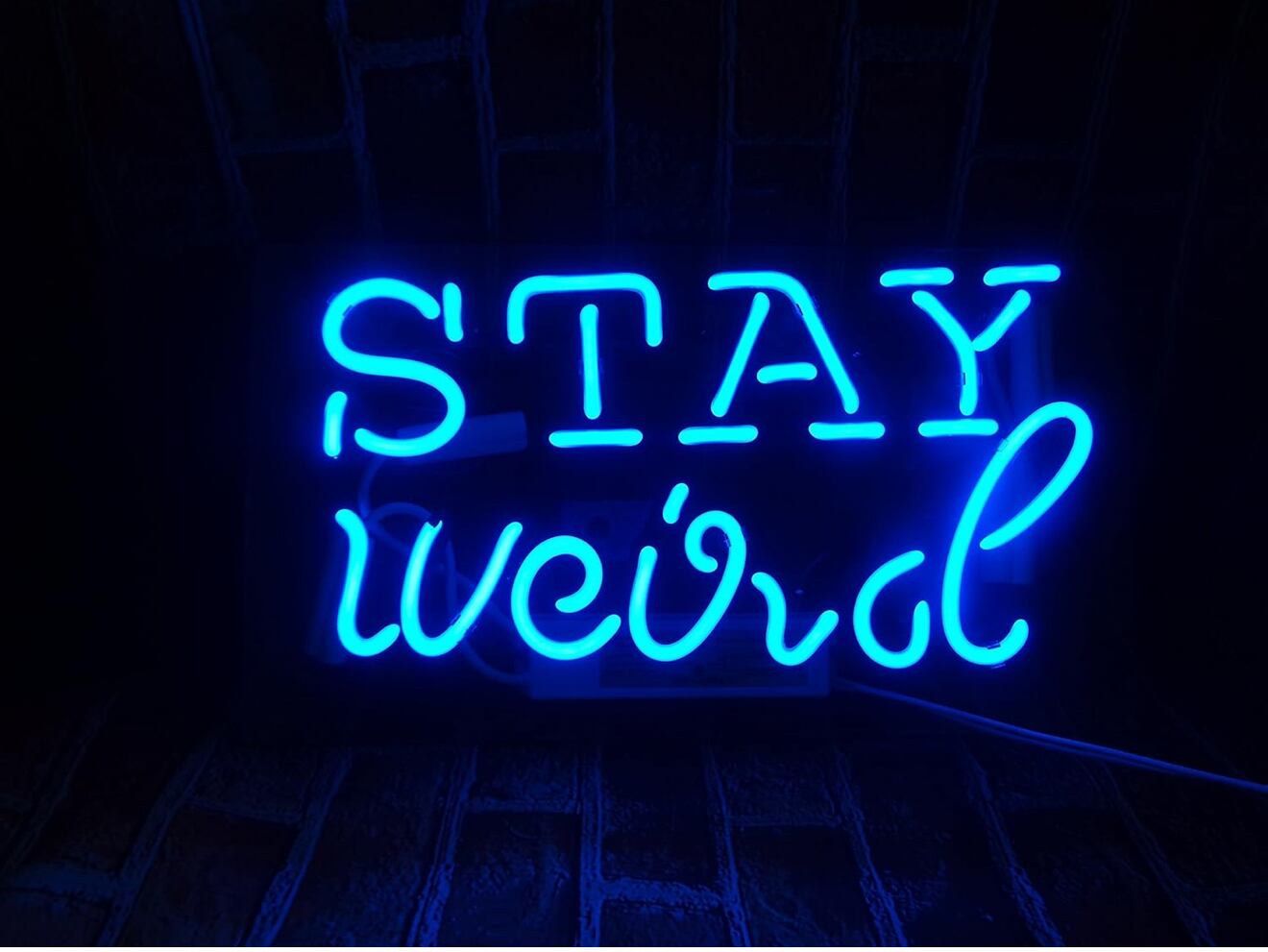 「STAY weird(変わり者でいよう)」というメッセージは、個性を大切にし、常識にとらわれない自分らしさを表現する言葉として世界中で人気です。クリエイティブな空間や、自己表現を楽しみたい方にぴったりのネオンサインです。ユニークなフォントと鮮やかなブルーの光が、空間にインパクトと遊び心をプラスしてくれます。