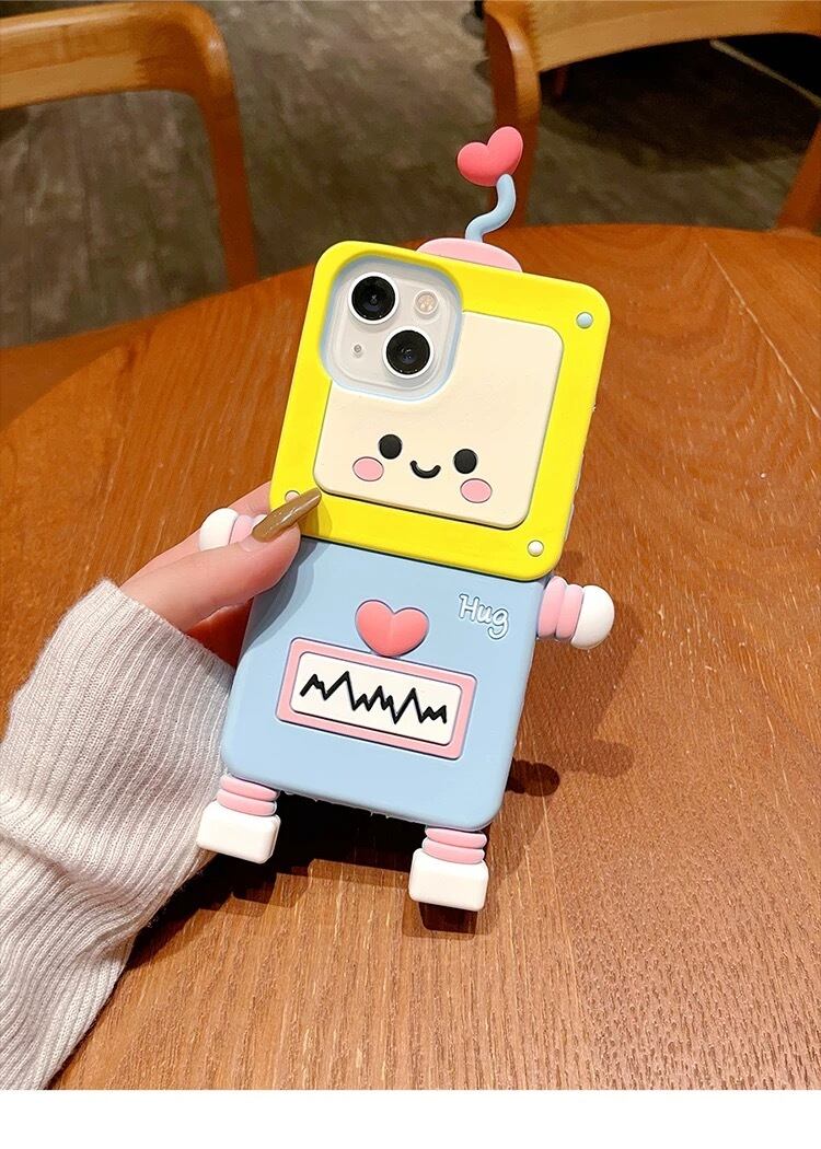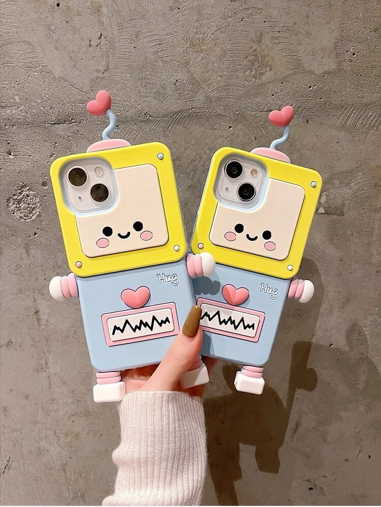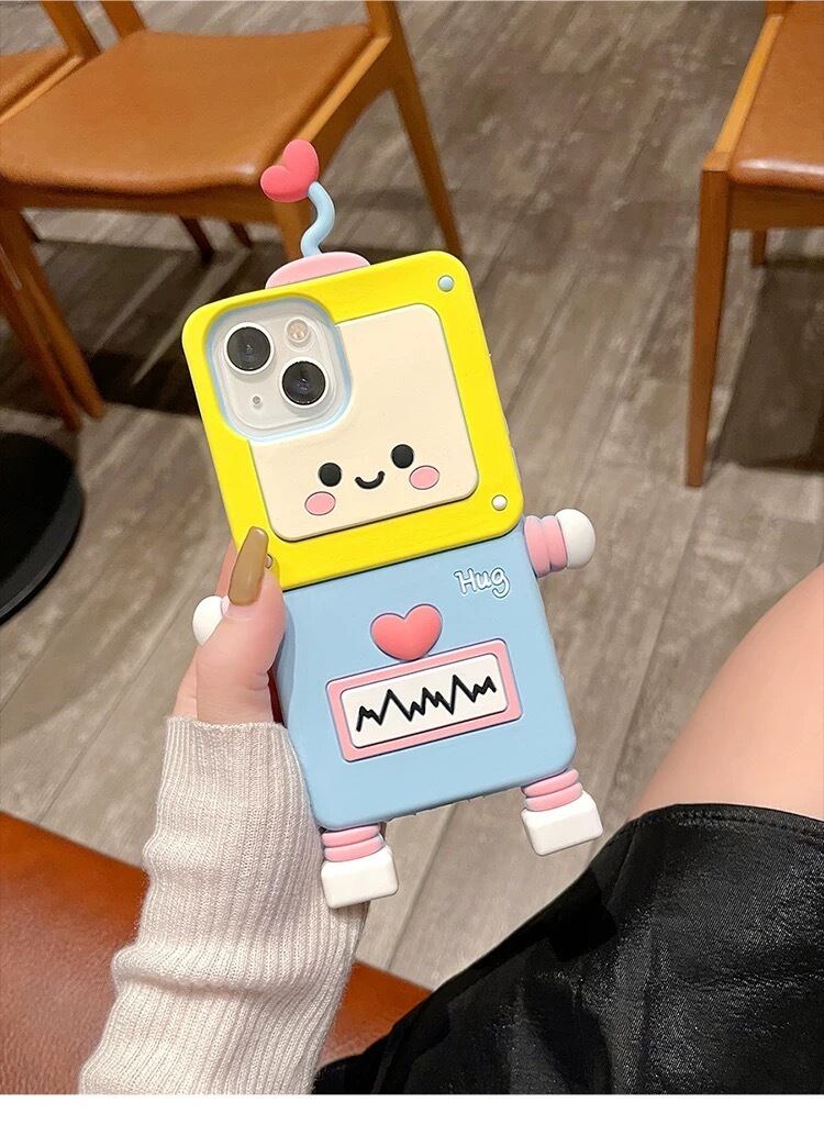 こちらは、見た瞬間に思わず「かわいい!」と声が出る、ポップでユニークな立体ロボット風スマホケースです。