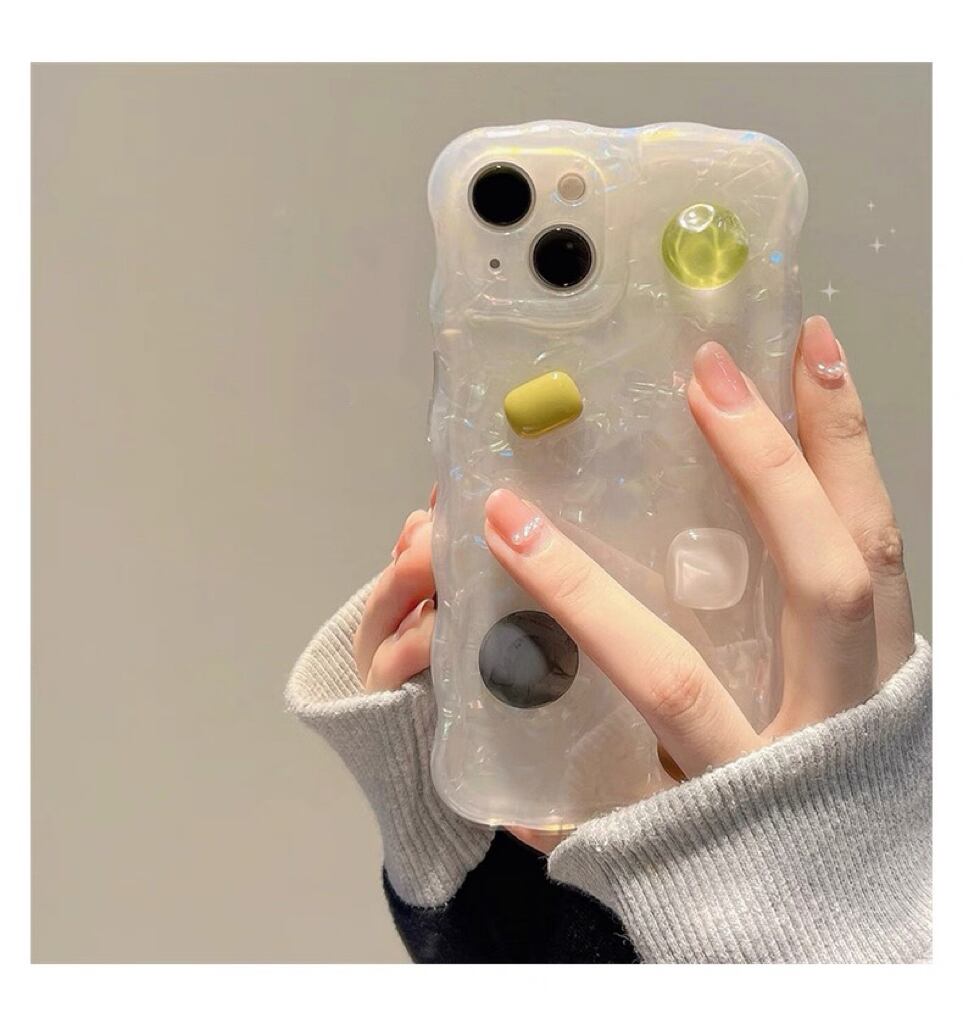iPhone11〜iPhone16対応 ぷっくり立体ジェリービーンズ風・オーロラマーブルソフトケース|個性的で可愛いスマホカバー|透明×立体パーツデザイン|レンズ保護付き|軽量耐衝撃 | Oct.life_STYLE