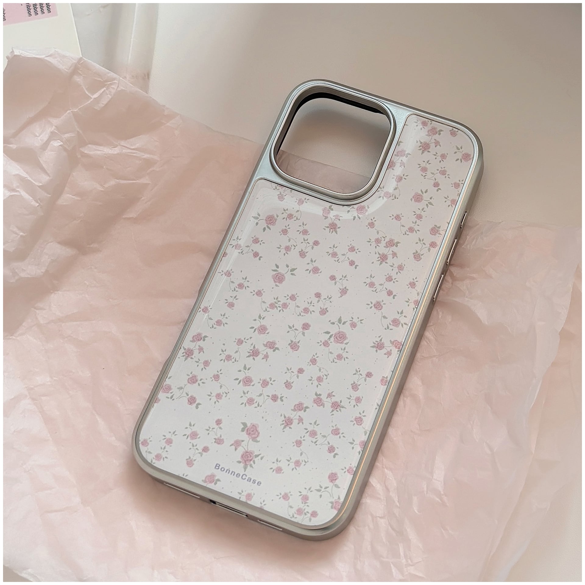 iPhoneケース 花柄 小花柄 フラワーデザイン 銀縁 ケース Bonne Case iPhone16 iPhone15 iPhone14 iPhone13 可愛い おしゃれ 女子 スマホカバー 透明 ソフトケース ガーリー プレゼント ナチュラル系 韓国風 森ガール シンプル 上品 フレンチガーリー iPhoneソフトケース Bonneシリーズ