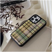 iPhoneケース チェック柄 黒縁ケース 黄緑チェック 大人デザイン ソフトケース Bonneケース ユニセックス モダン スタイリッシュ iPhone16 iPhone15 iPhone14 iPhone13 クラシック スタンド別売り アクセサリーパーツ別購入