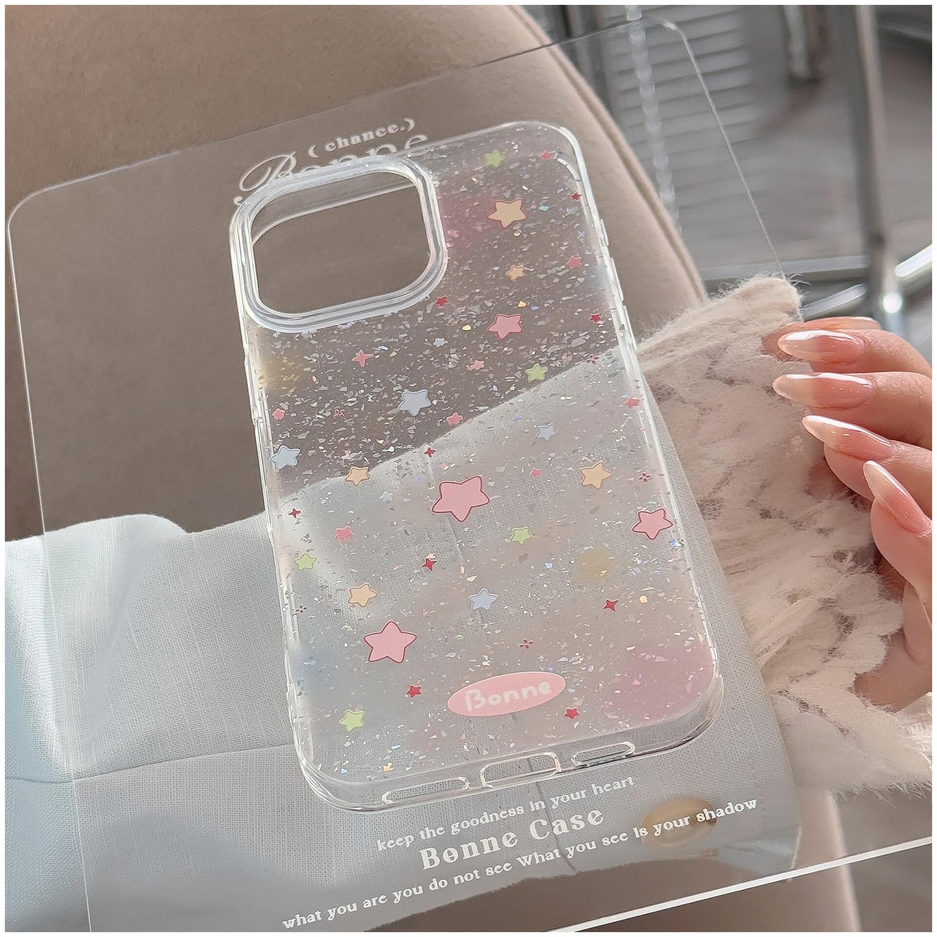 iPhoneケース スマホケース 星柄 クリアケース ラメ 透明 かわいい ガーリー キラキラ Bonne風 韓国風 人気 iPhone16 iPhone15 iPhone14 iPhone13 iPhone12 iPhone11 iPhoneX プレゼント 女の子向け