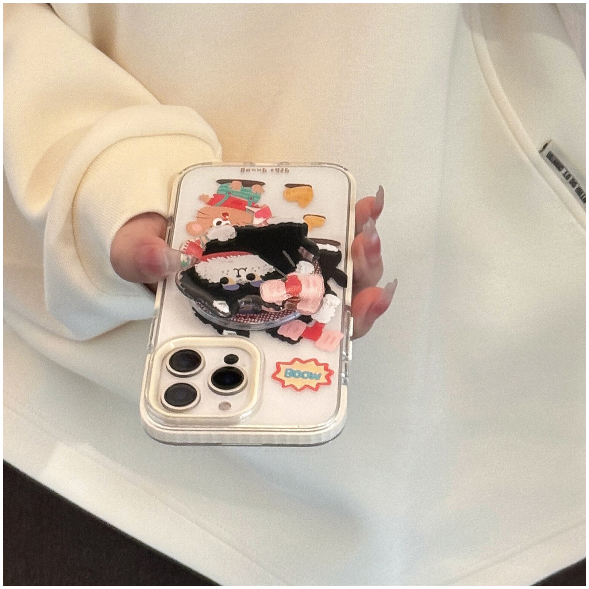 白縁磁吸対応 驚きネズミ 猫キャラ iPhoneケース マグネットスタンド別売 可愛い動物デザイン 立体アクリル iPhone16/15/14/13/12/11対応 プランプポップシリーズ | Oct.life_STYLE