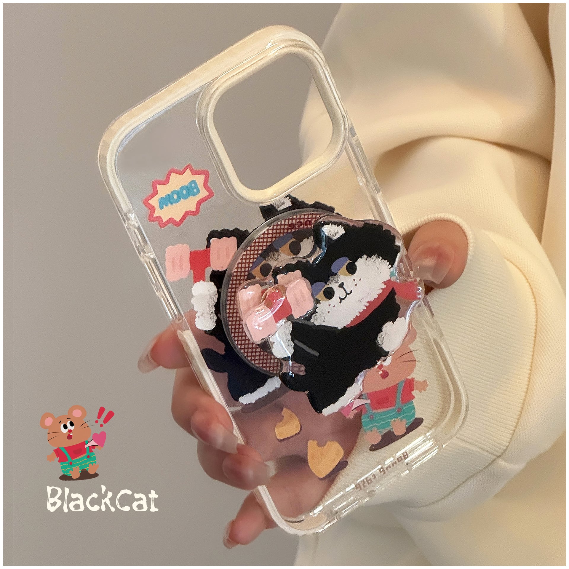iPhoneケース 白縁 マグネット対応 磁吸ケース ネズミ 猫 キャラクターケース アクリル スマホスタンド対応 回転スタンド ブラックキャットシリーズ iPhone16 iPhone15 iPhone14 iPhone13 iPhone12 iPhone11 立体装飾 かわいい おもしろケース ユニーク プランプポップ ガーリー 韓国風 動物キャラケース
