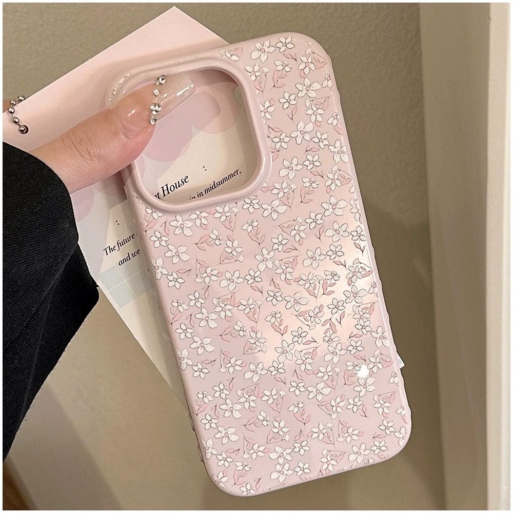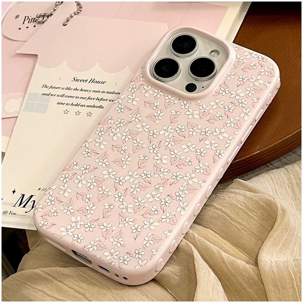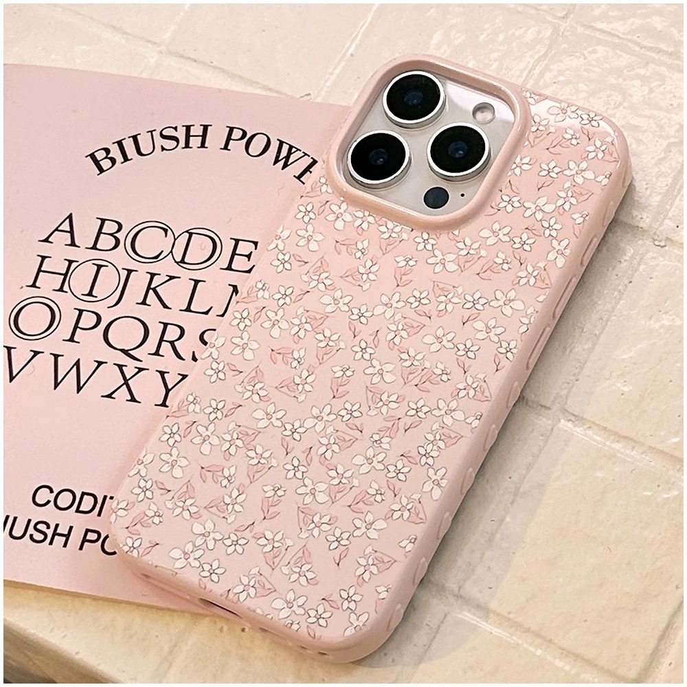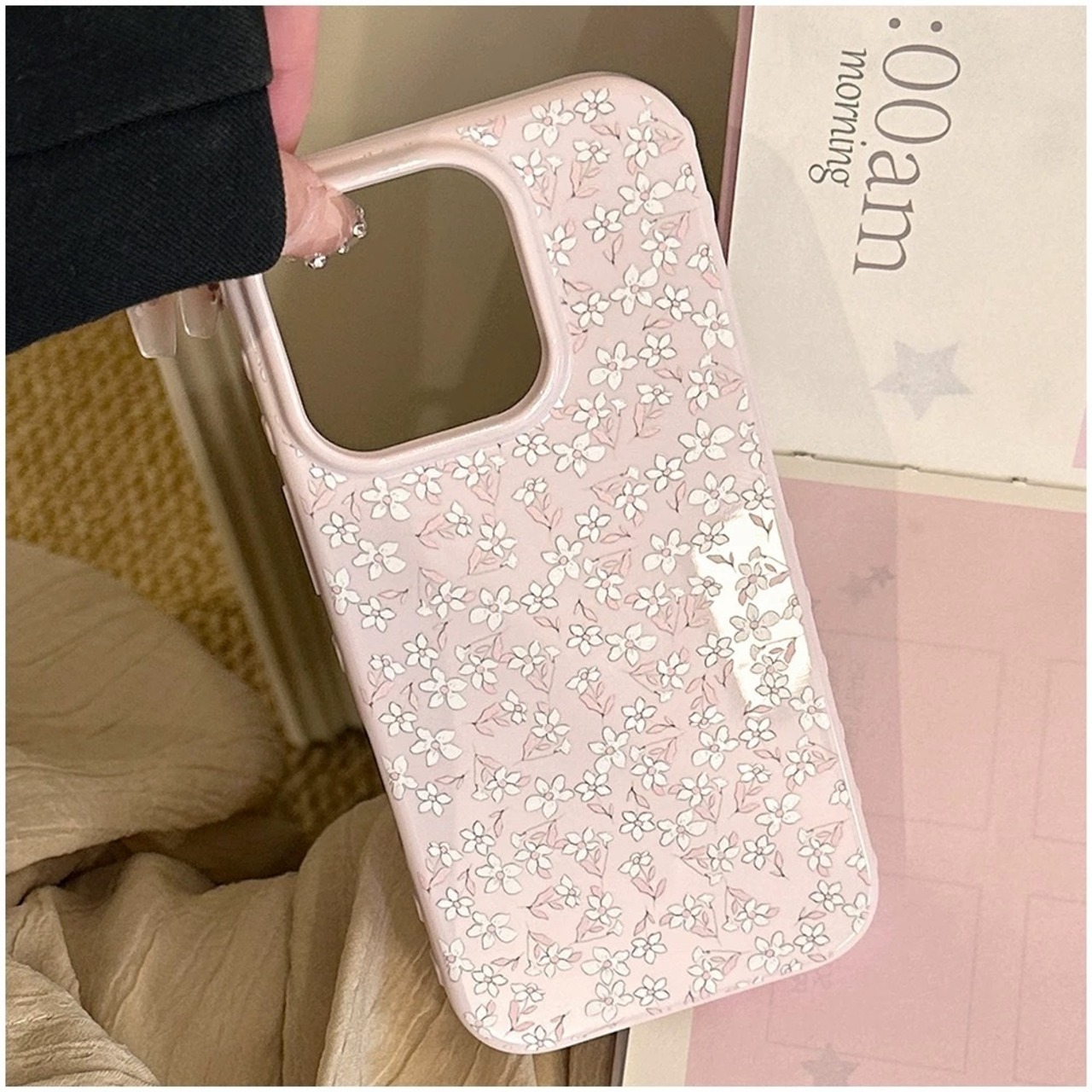やさしく甘い“芭楽(グァバ)ピンク”のカラーに、繊細なホワイトの小花とピンクの葉柄をちりばめた、フェミニンで上品なソフトシリコンiPhoneケースです。