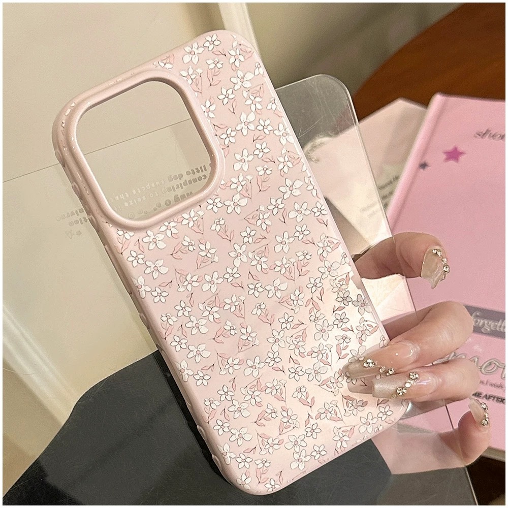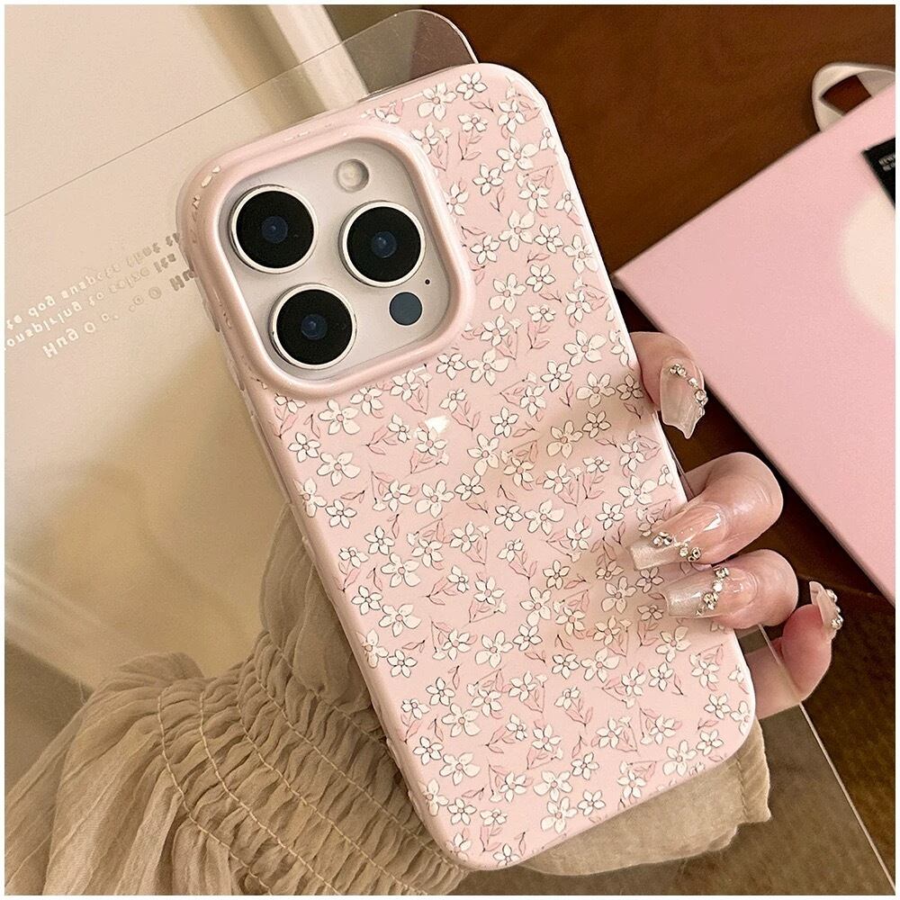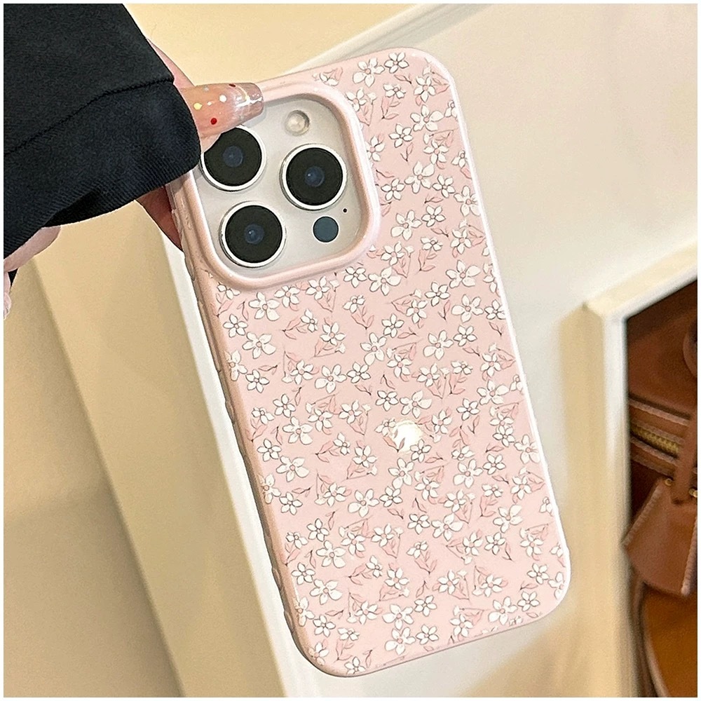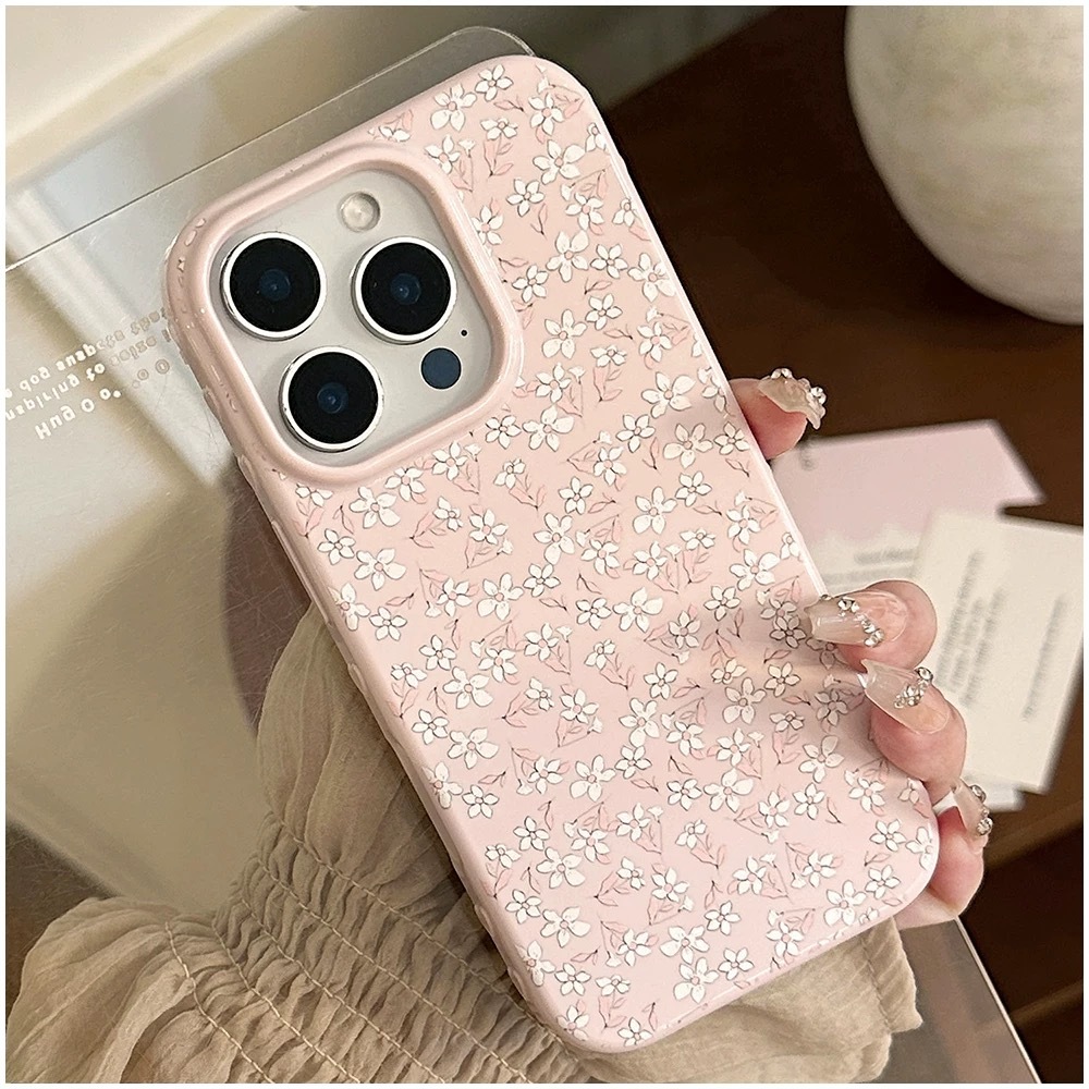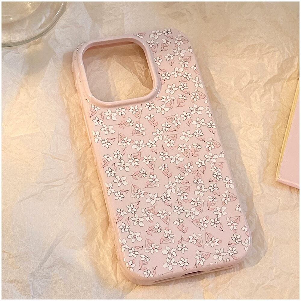やさしく甘い“芭楽(グァバ)ピンク”のカラーに、繊細なホワイトの小花とピンクの葉柄をちりばめた、フェミニンで上品なソフトシリコンiPhoneケースです。