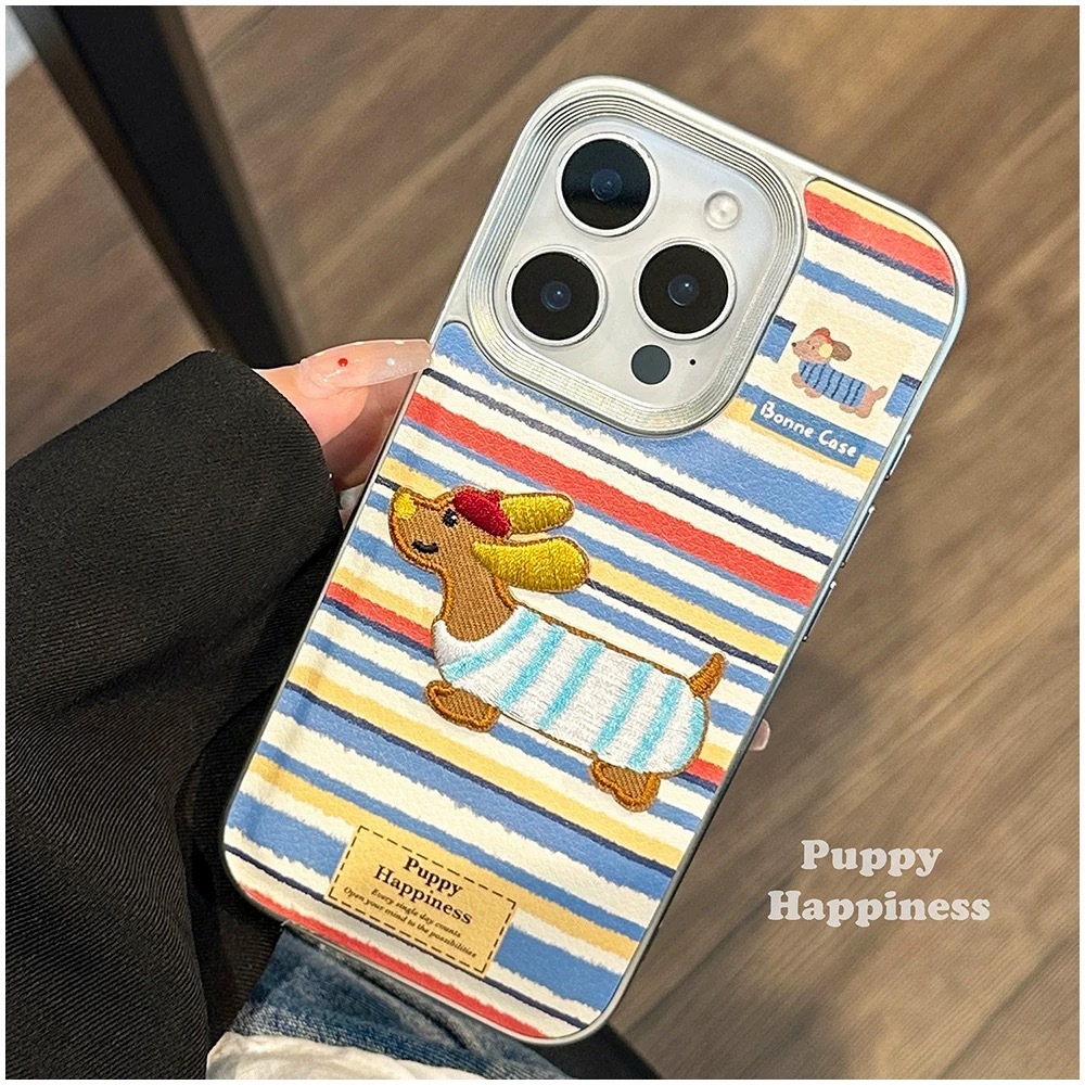 iPhone16ケース iPhone15ケース iPhoneペット柄ケース iPhone犬柄カバー iPhone刺繍風 iPhone可愛いケース iPhoneボーダー iPhoneソフトシリコンケース iPhoneカメラ保護ケース iPhone銀フレーム iPhoneユニークデザイン iPhoneアニマルケース BASE対応 ギフト向け ダックスフンド iPhoneスマホケース メンズ レディース ユニセックス Puppy Happiness Bonne Case