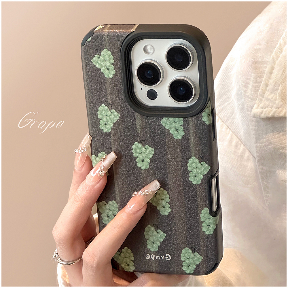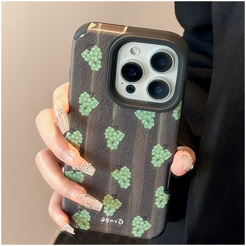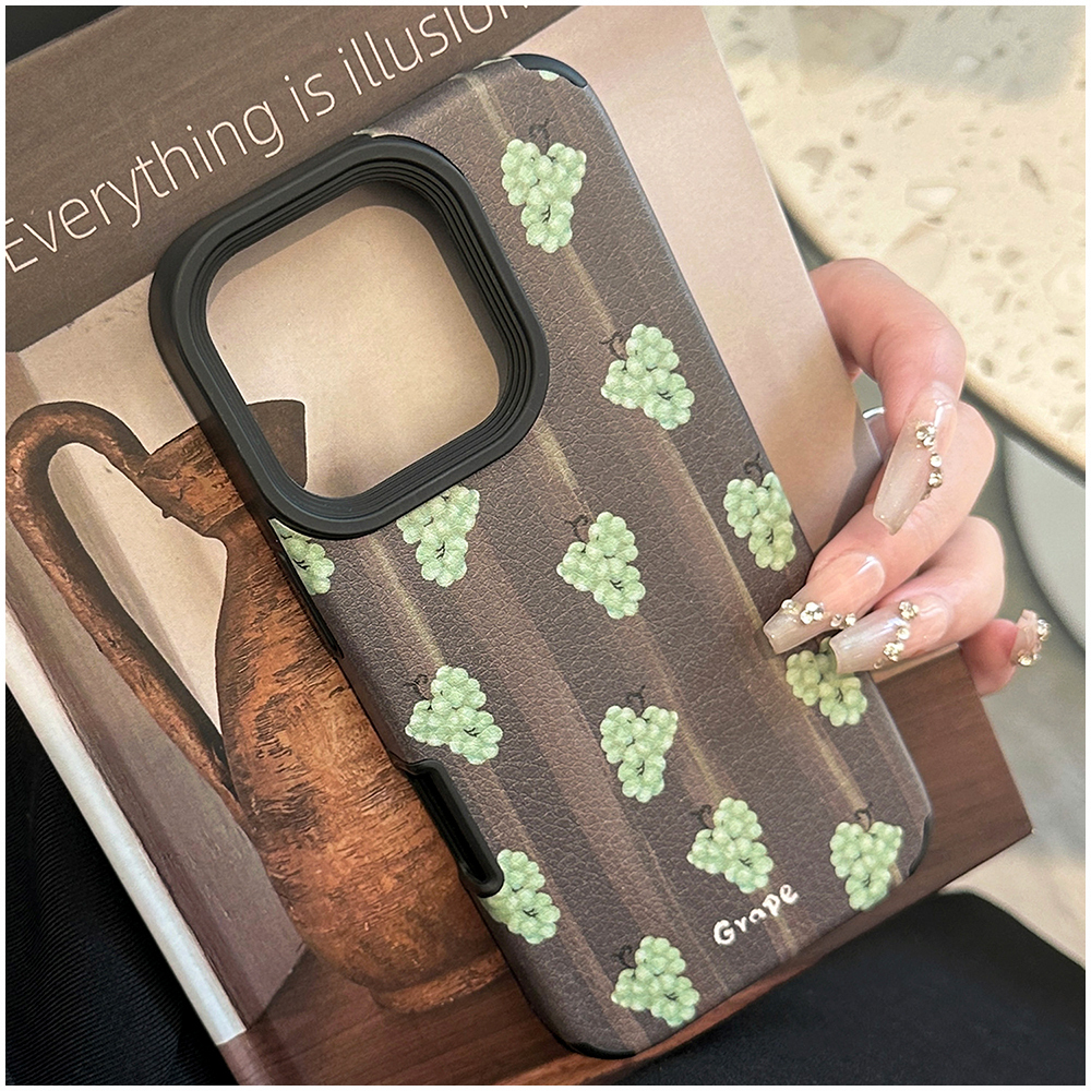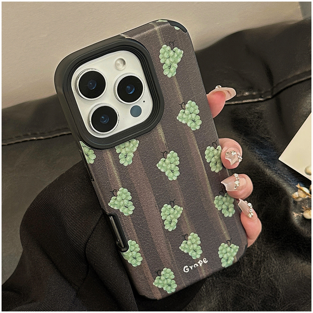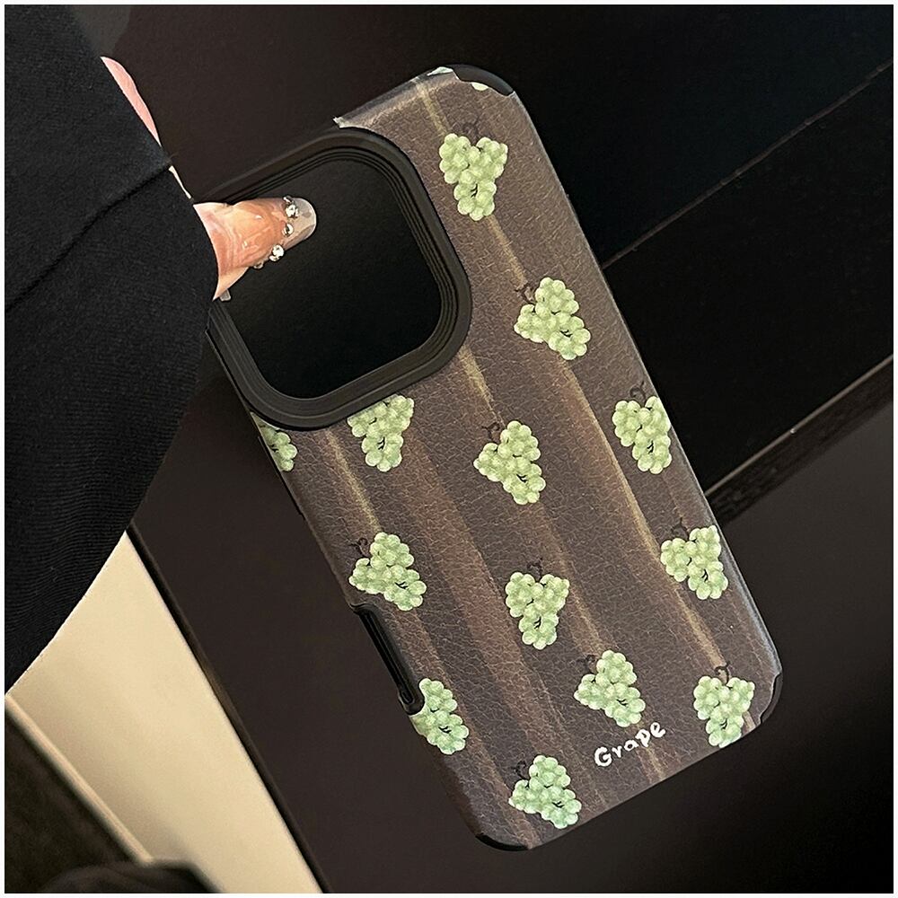 iPhoneケース グレープ 葡萄柄 ぶどう柄 レザー調 PU マット 高級感 ソフトケース TPU iPhone17 iPhone17Plus iPhone16 iPhone16Plus iPhone15 iPhone15Plus iPhone14 iPhone14Plus 大人女子 くすみカラー 果物モチーフ 韓国風 メンズ可 スタイリッシュ シンプル
