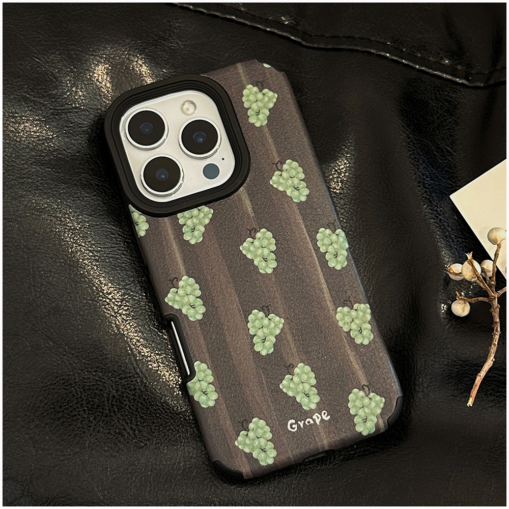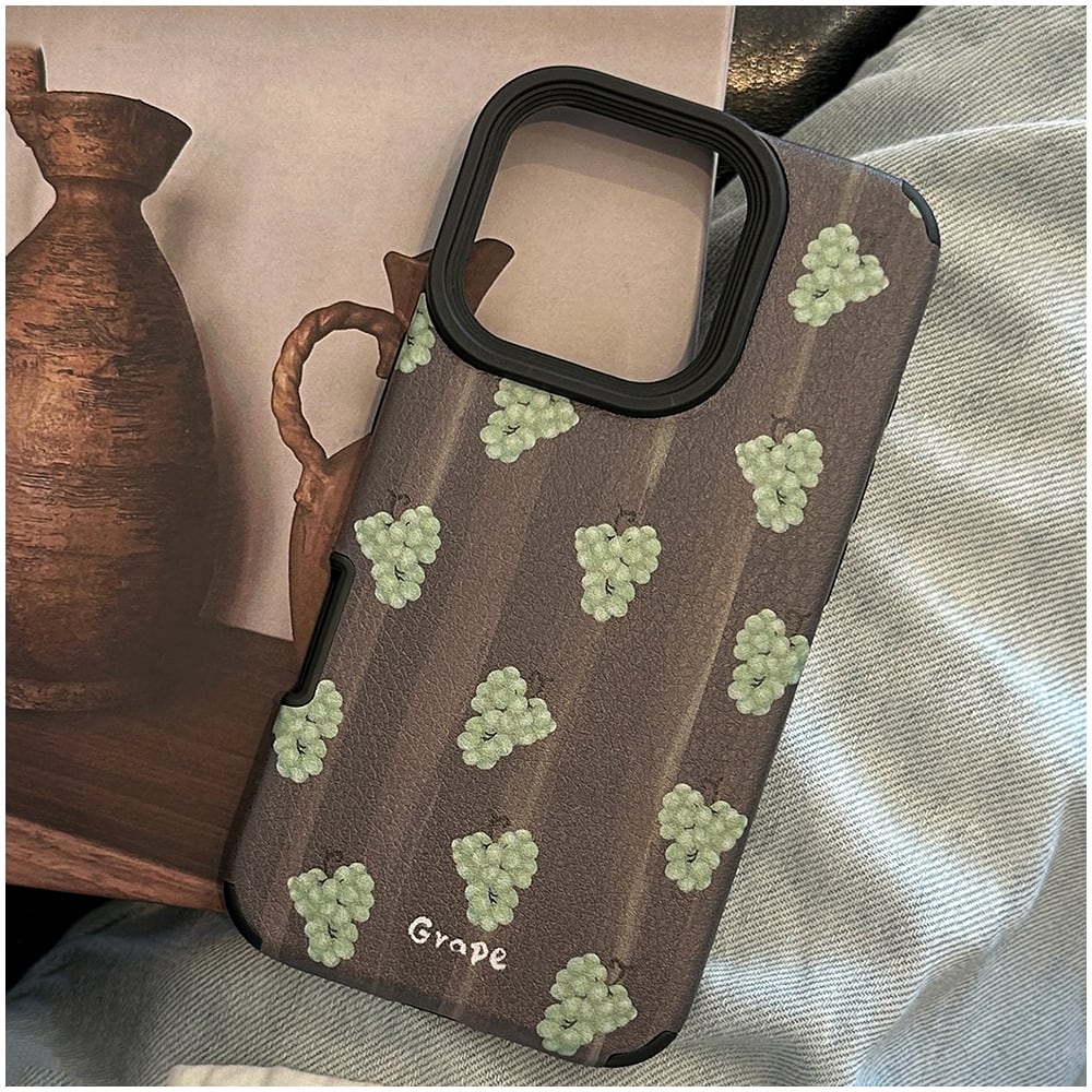 上品で落ち着いたトーンが魅力の、葡萄(グレープ)柄iPhoneケース。