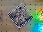 ・デザイン:赤く光る「福」の文字を中央に配置し、緑と白の枠で縁取った華やかなネオンサイン。