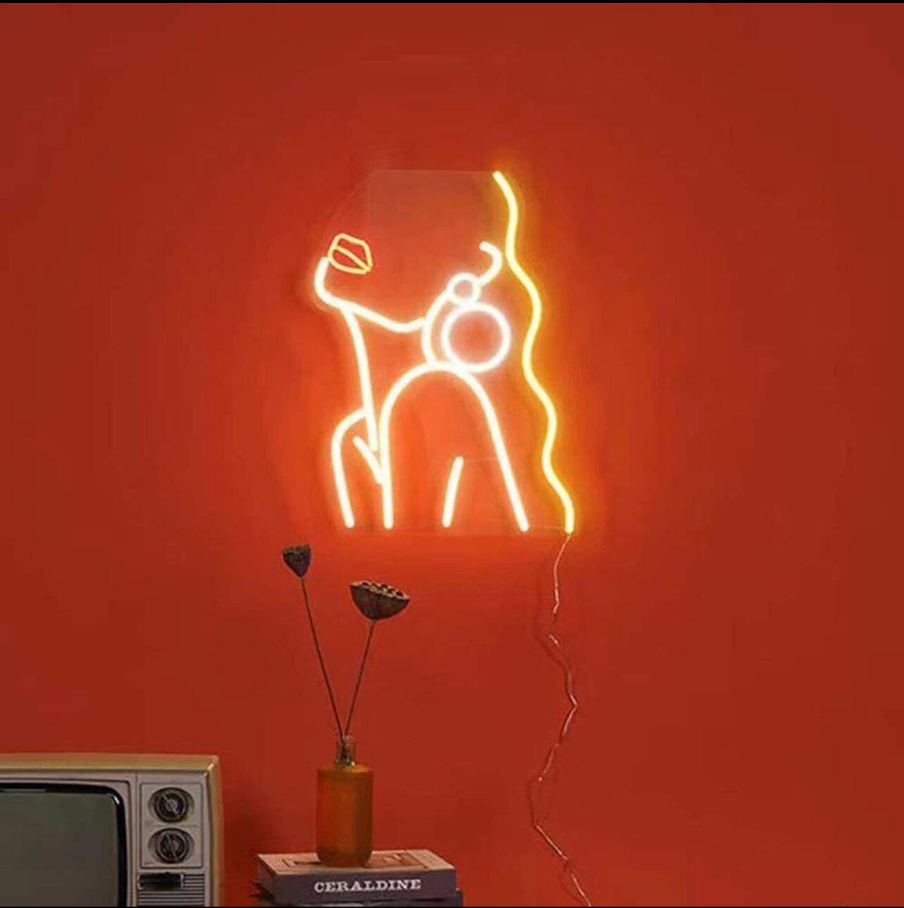 セクシーな女性のデザインが目を引くネオンサインで、