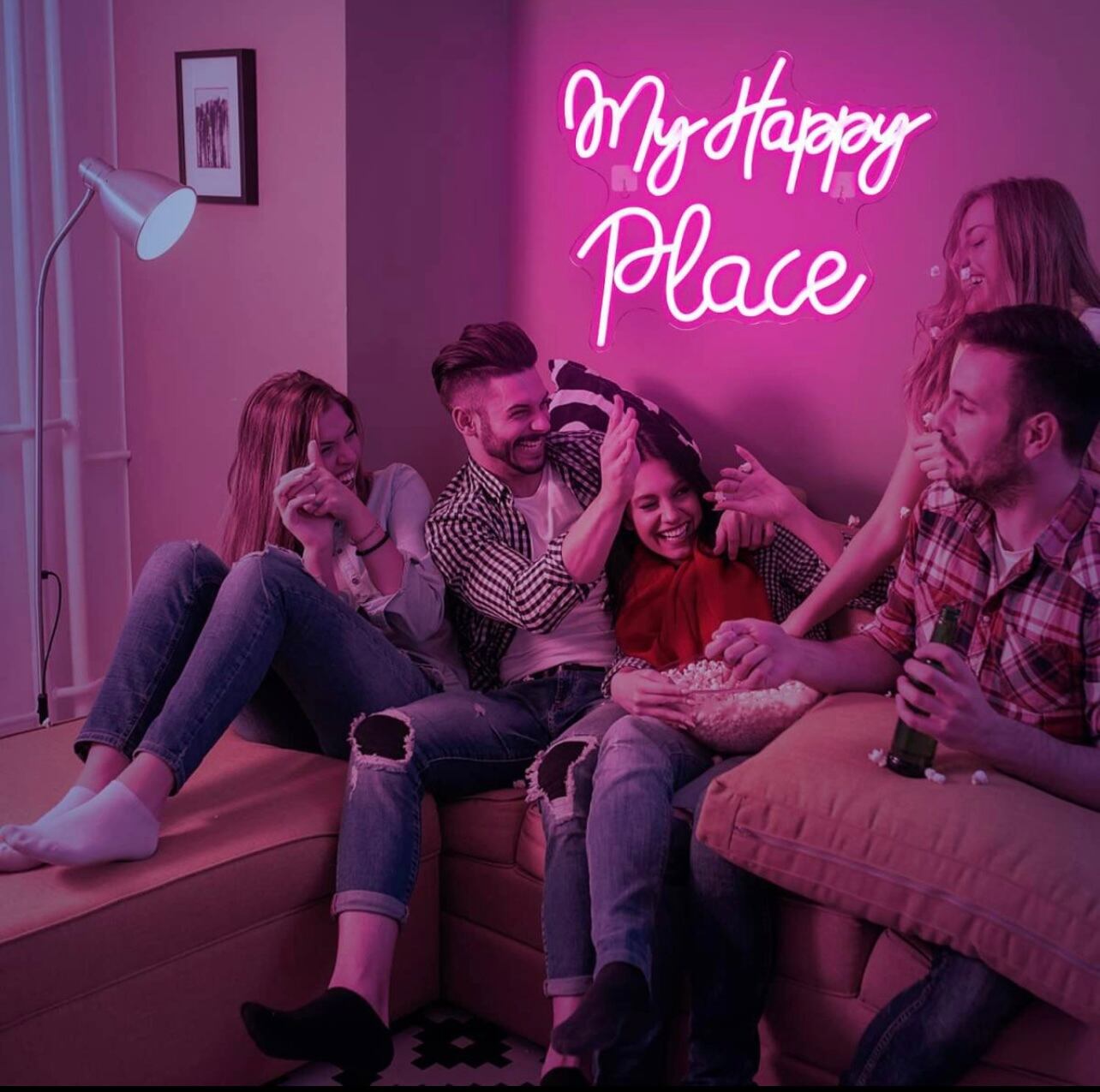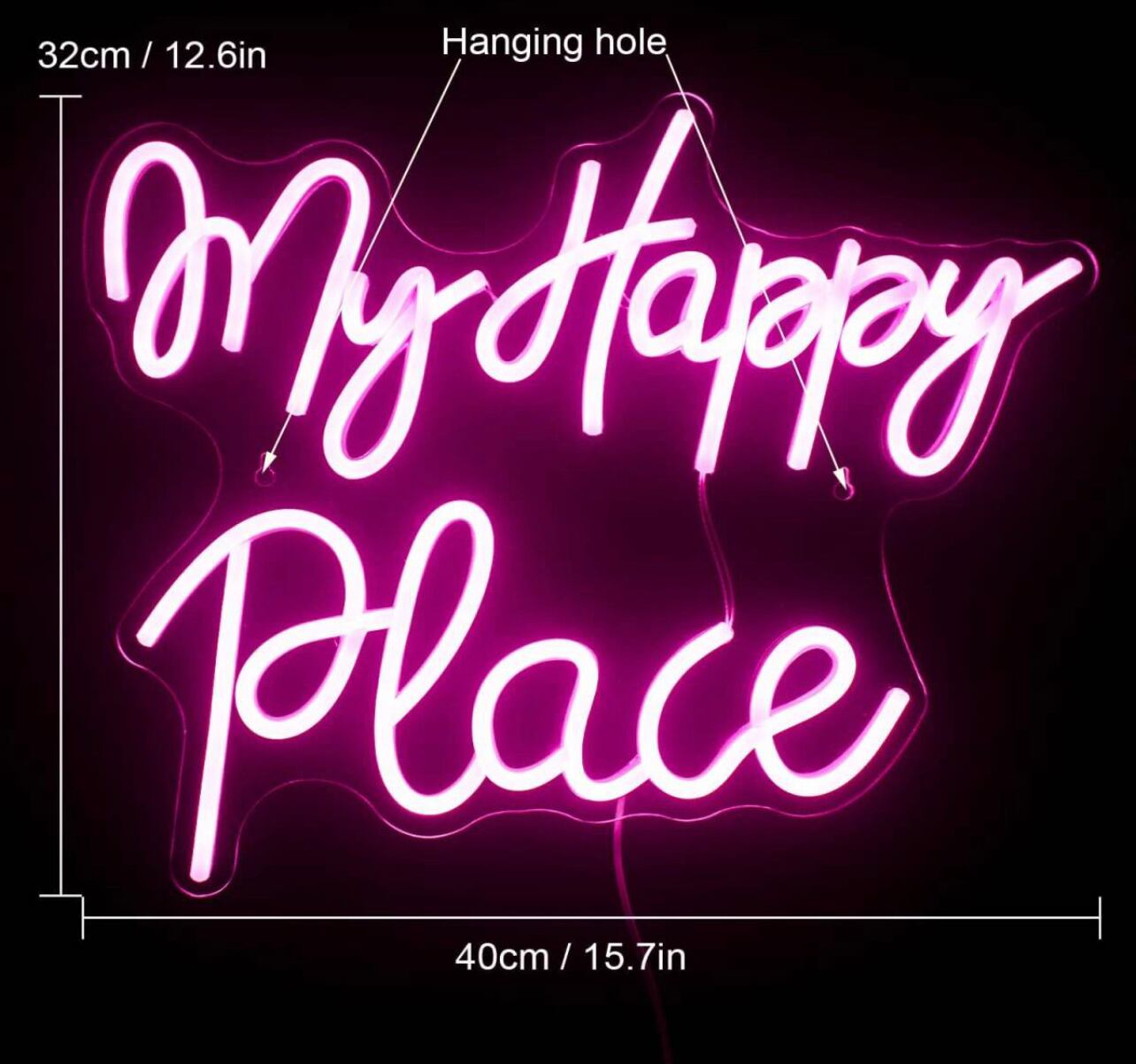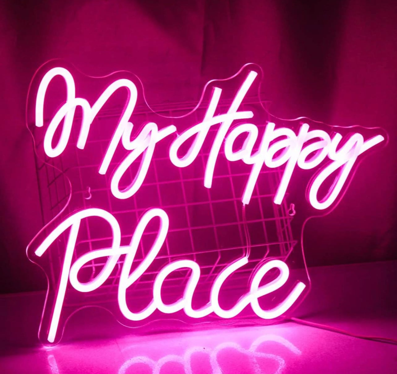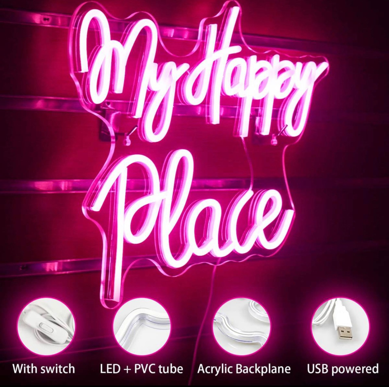 オリジナル ネオンサイン LED ピンクワード パーティー看板 お洒落「My Happy Place」BAR 寝室インテリア ユニークな贈り物 ディスプレイ 雰囲気照明 ネオン管 オーダー オーダーメイド | Oct.life_STYLE